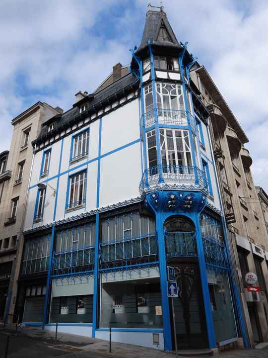 Maison Biet, 1901-1902, rebuilt 1922, 22, Rue de la Commanderie. Don’t miss the cat on the roof!